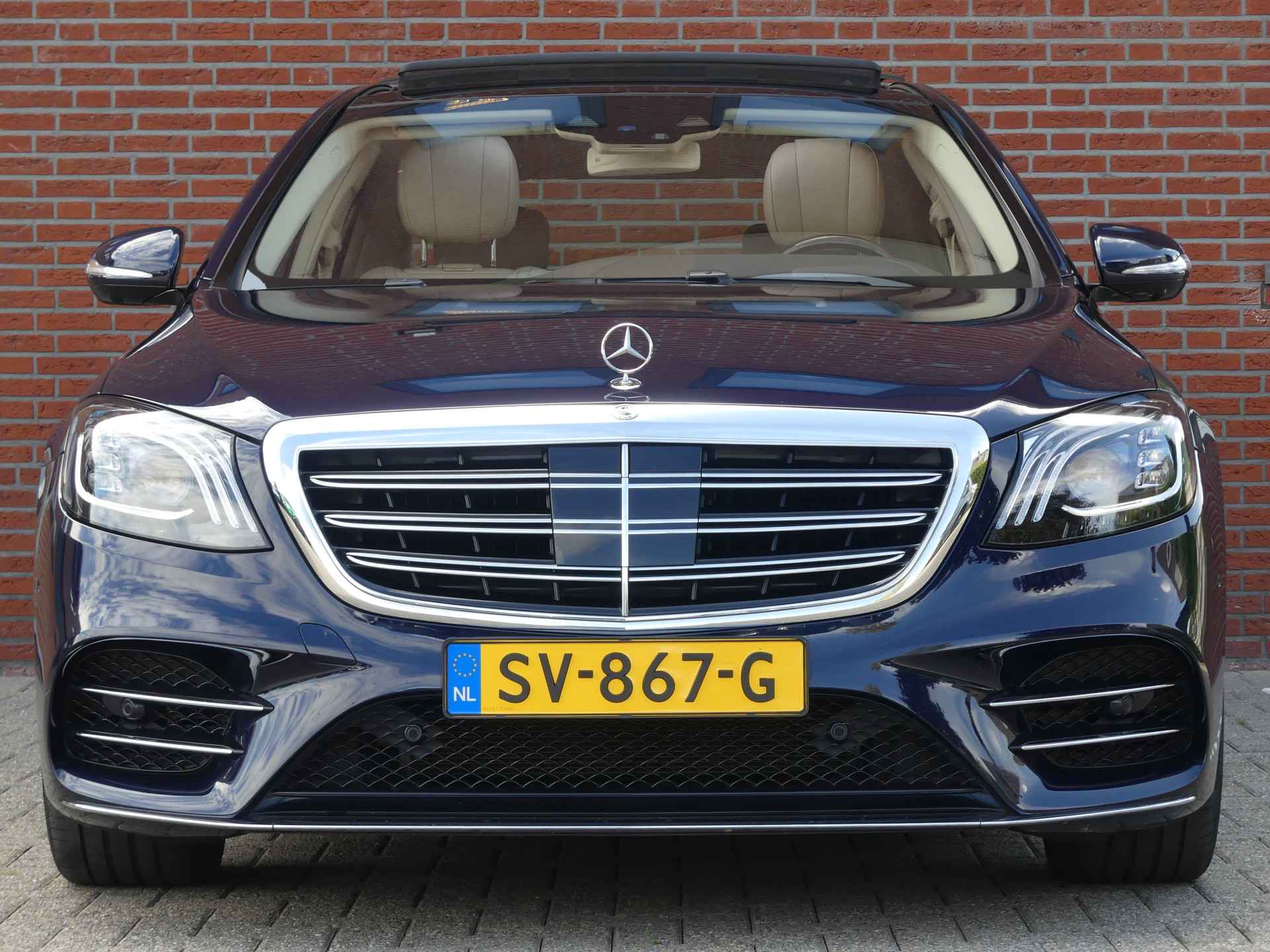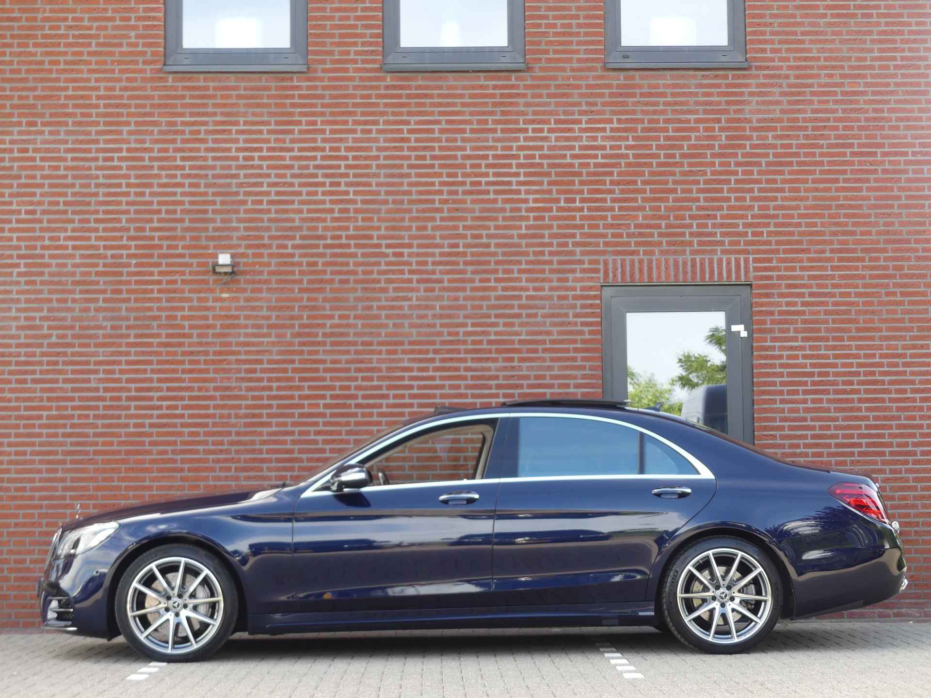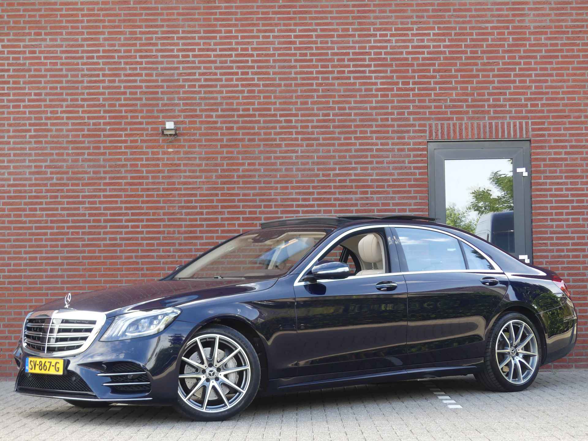 Zeer nette en volledig dealer onderhouden Mercedes S-Klasse 450 Lang Premium Plus voorzien van AMG pakket. U kunt ons bereiken op nummer 0317-358830 of op 06-41383399. Bezoek onze website voor de volledige fotorapportage. Deze S-Klasse is o.a. voorzien van climate control, adaptive cruise control, navigatie, surround view camera, rijstrooksensor, headup display, keyless entry, softclose, stoelverwarming en koeling voor en achterbank, elektrisch bedienbare zonneschermen, elektrisch verstelbare voorstoelen en achterbank met geheugenfunctie, multifunctioneel stuurwiel, elektrisch bedienbaar panoramadak, lederen bekleding, elektrisch bedienbare en inklapbare spiegels, luchtvering, led verlichting, airco separaat achter, regen en lichtsensor, lichtmetalen velgen, parkeersensoren voor en achter, elektrisch bedienbare achterklep, massage stoelen ect ect. Onderhoudshistorie en nationale autopas aanwezig. Inruil mogelijk. Bezichtiging op afspraak. Kosten rijklaarmaken € 495,-