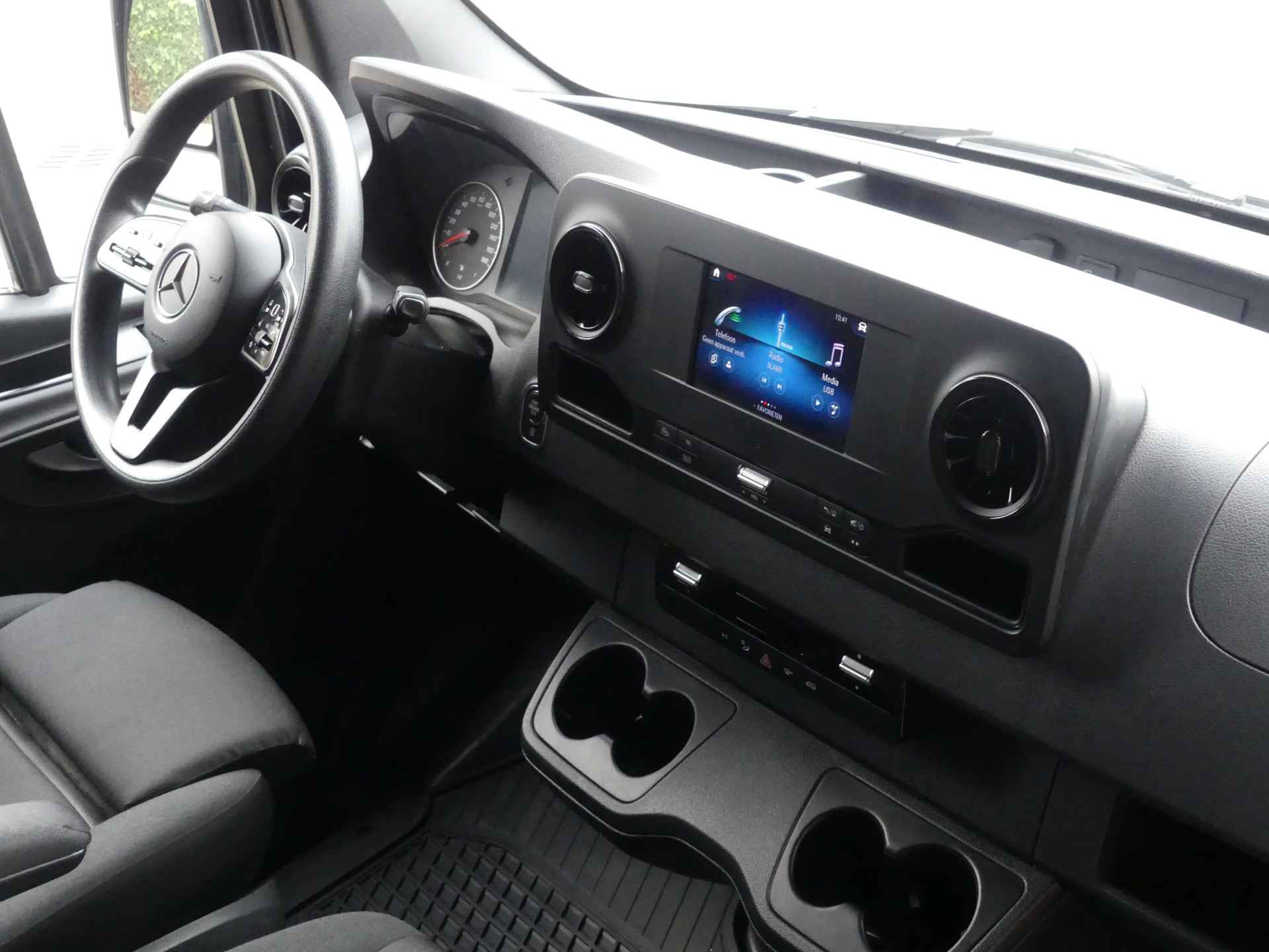 Zeer nette en dealer onderhouden Mercedes Sprinter 319 CDI L2H2 automaat afkomstig van de 1ste eigenaar. U kunt ons bereiken op nummer 0317-358830 of op 06-41383399. Deze Sprinter is o.a. voorzien van airco, cruise control, navigatie via apple carplay of android, achteruitrijcamera, regen en lichtsensor, led verlichting, geveerde bestuurdersstoel, multifunctioneel stuurwiel, side bars, bumpers in carrosseriekleur, parkeersensoren voor en achter, lichtmetalen velgen, bijrijdersbank, middenarmsteun ect ect. Onderhoudshistorie en nationale autopas aanwezig. Inruil mogelijk. Bezichtiging op afspraak. Kosten rijklaarmaken € 495,-