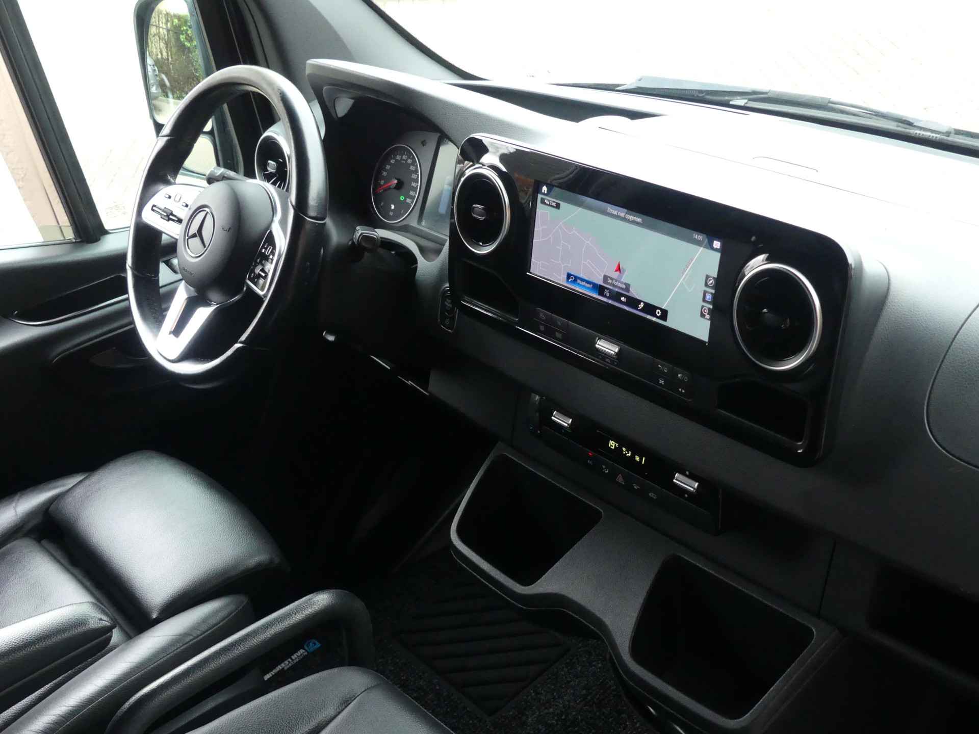 Zeer nette en dealer onderhouden Mercedes Sprinter 319 CDI V6 L2H2 automaat afkomstig van de 1ste eigenaar. U kunt ons bereiken op nummer 0317-358830 of op 06-41383399. Deze Sprinter is o.a. voorzien van airco, cruise control, groot navigatie, achteruitrijcamera, regen en lichtsensor, lederen bekleding, stoelverwarming, elektrisch verstelbare en inklapbare spiegels, multifunctioneel stuurwiel, lichtmetalen velgen, side bars, bumpers in carrosseriekleur, trekhaak, mistlampen ect ect. Onderhoudshistorie en nationale autopas aanwezig. Inruil mogelijk. Bezichtiging op afspraak. Kosten rijklaarmaken € 495,-